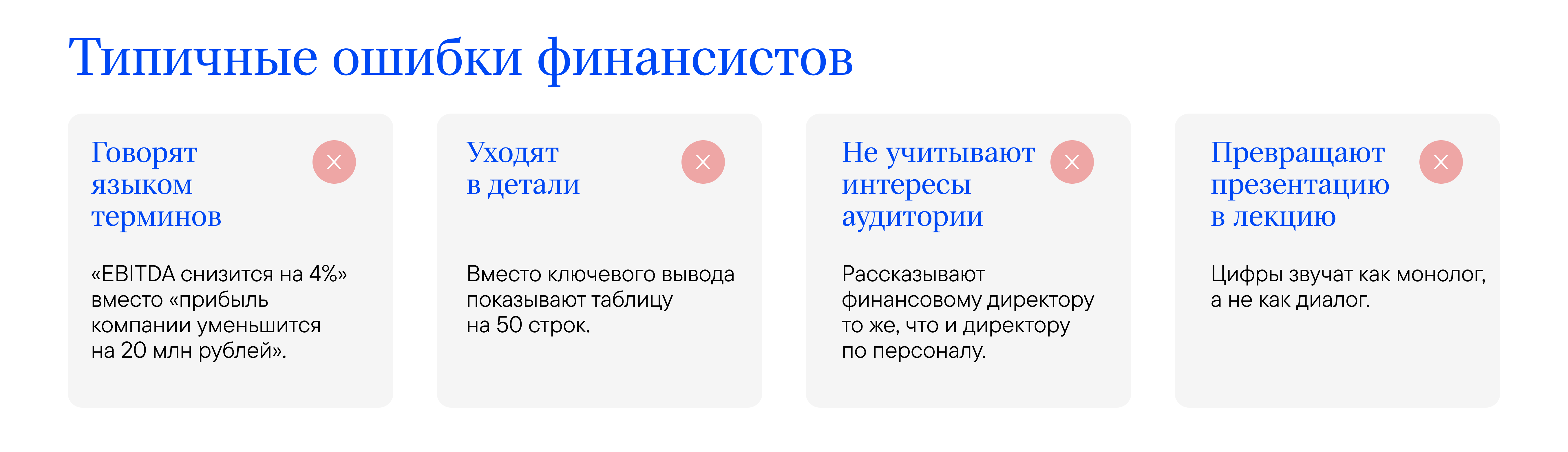 Задача финансиста в XXI веке — перевести цифры в понятную ценность для конкретного коллеги. И это требует уже не только hard skills, но и развитых гибких навыков (soft skills): умения адаптировать информацию, выстраивать диалог и убеждать.