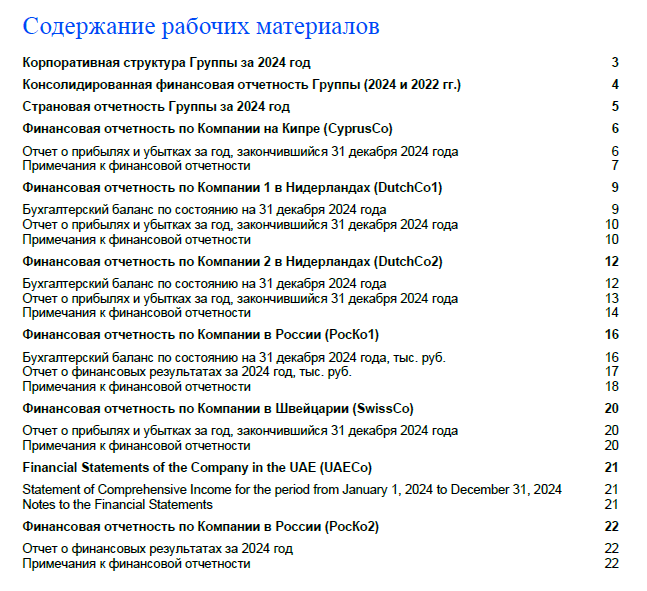 Сase study на примере условного холдинга с присутствием в ОАЭ, на Кипре, Швейцарии, Нидерландах и России, включая рабочие материалы и рабочую тетрадь в формате PDF (с исходными цифровыми данными и выдержками из финансовой отчетности и CbCR), предназначенные для самостоятельной проработки.