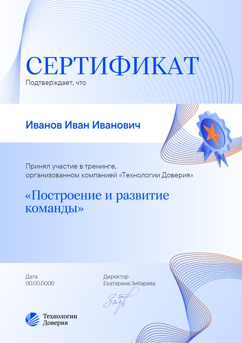 Слушателям выдаётся свидетельство об участии в семинаре «Построение и развитие команды», а также при необходимости сертификат, подтверждающий количество CPD-часов.