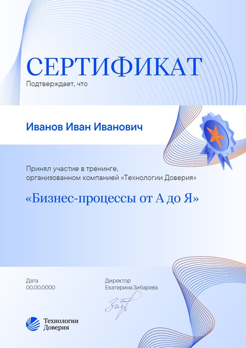 Слушателям выдаётся свидетельство об участии в семинаре «Бизнес-процессы от А до Я», а также при необходимости сертификат, подтверждающий количество CPD-часов.