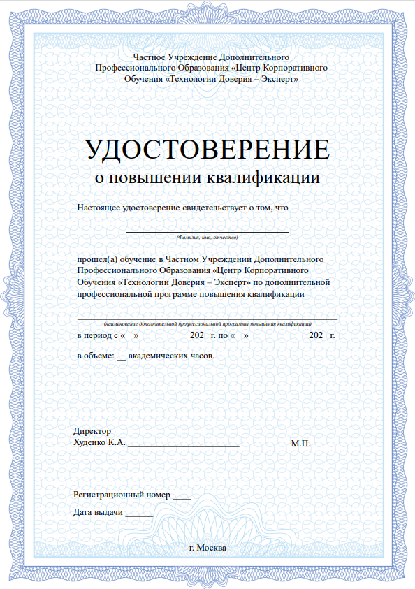 Слушателям выдаётся Удостоверение о повышении квалификации «ИИ для финансовых специалистов». Удостоверение вносится в федеральный реестр. Наличие и подлинность документа могут быть проверены вами или вашим работодателем.