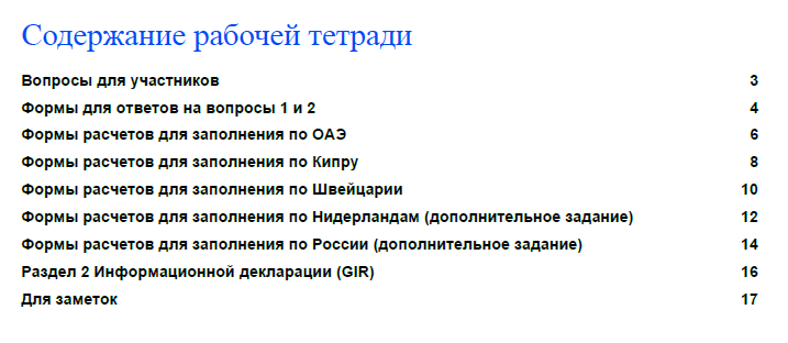 Сase study на примере условного холдинга с присутствием в ОАЭ, на Кипре, Швейцарии, Нидерландах и России, включая рабочие материалы и рабочую тетрадь в формате PDF (с исходными цифровыми данными и выдержками из финансовой отчетности и CbCR), предназначенные для самостоятельной проработки.